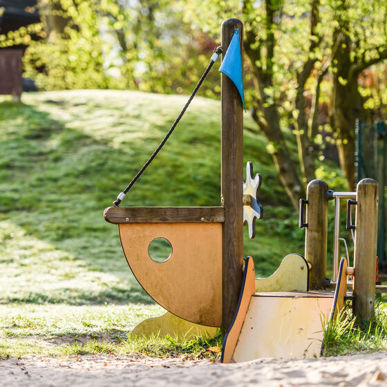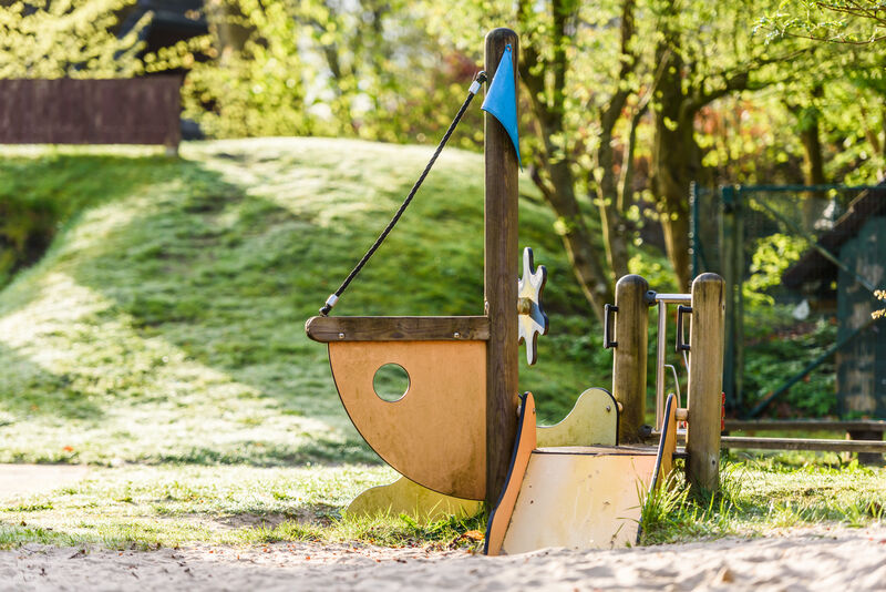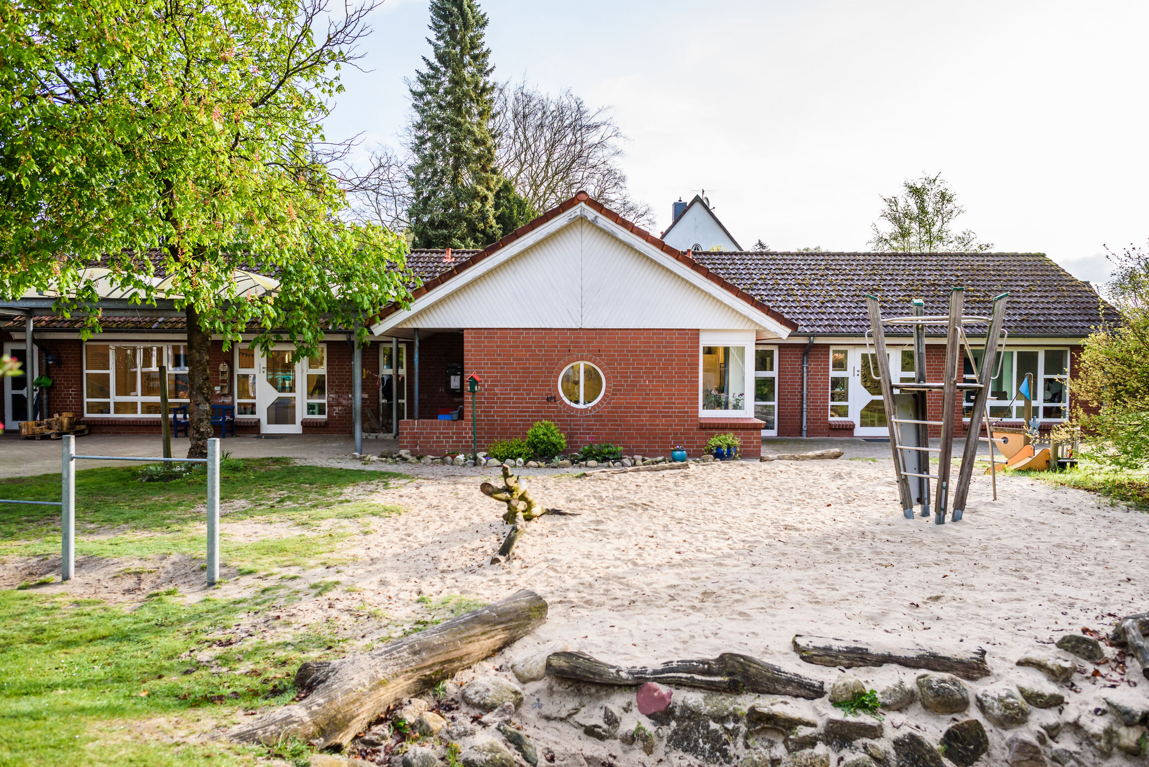 Unsere Kita liegt direkt neben der Kirche umgeben von einem Waldgebiet in Hipstedt. Das Außengelände der Kita ist naturnah gestaltet mit einem Berg, einem kleinen „Wald“ und einer großen Sandkiste mit Klettergerüst.