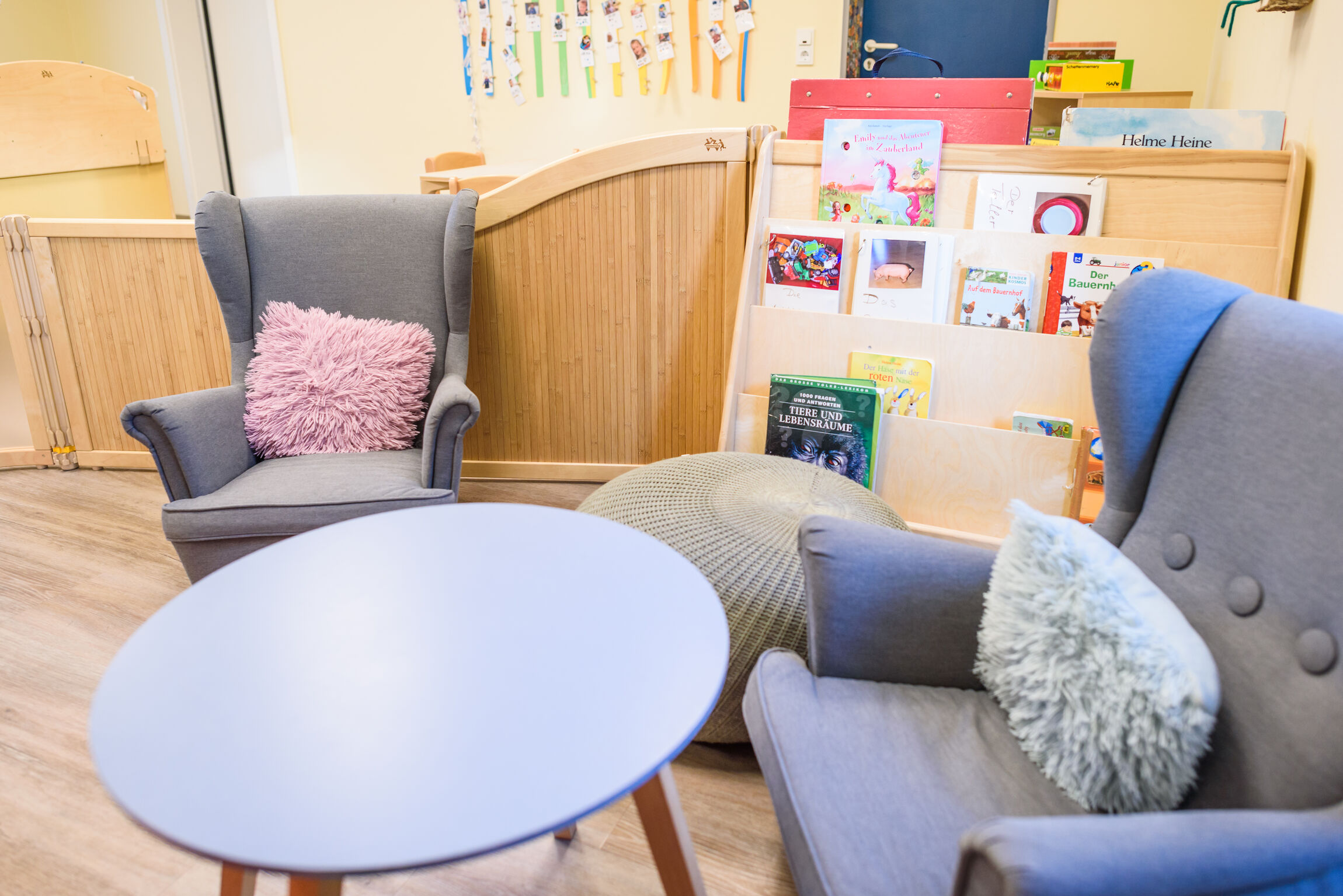 Wir haben z.B. eine gemütliche Leseecke mit vielen unterschiedlichen Büchern, die den Kindern immer zur Verfügung stehen.